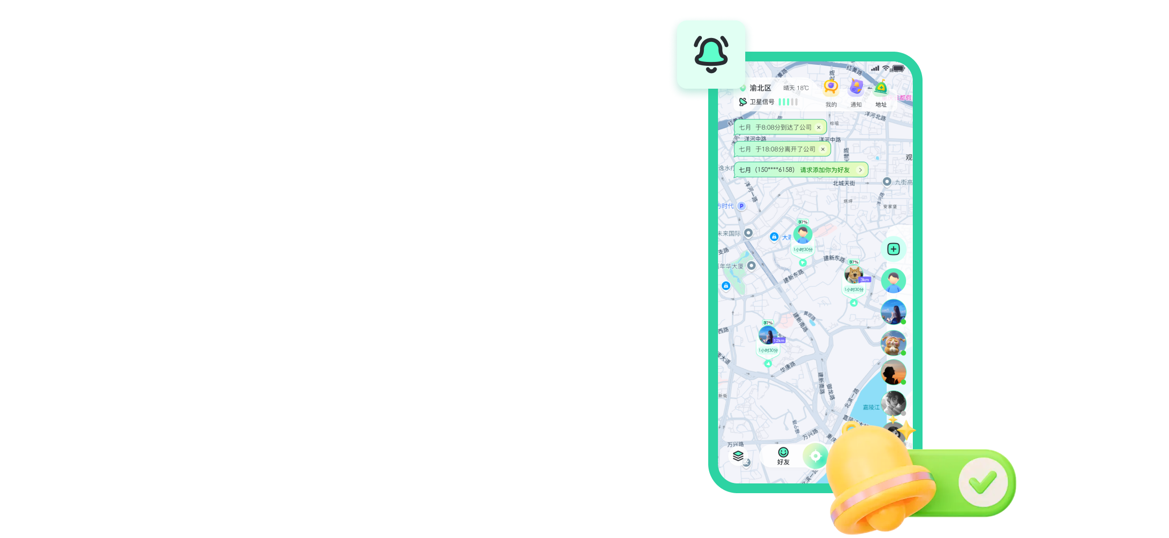 提供智能关键地提醒功能,当好友到达或离开您设定的重要地点(如家庭住址、学校、公司等)时,系统将立即通过手机弹窗+震动+铃声三重提醒实时通知您。所有提醒记录自动生成安全日志,附带动态轨迹记录和时间标记,让您对TA的重要行程了如指掌,紧急时刻永远快人一步。